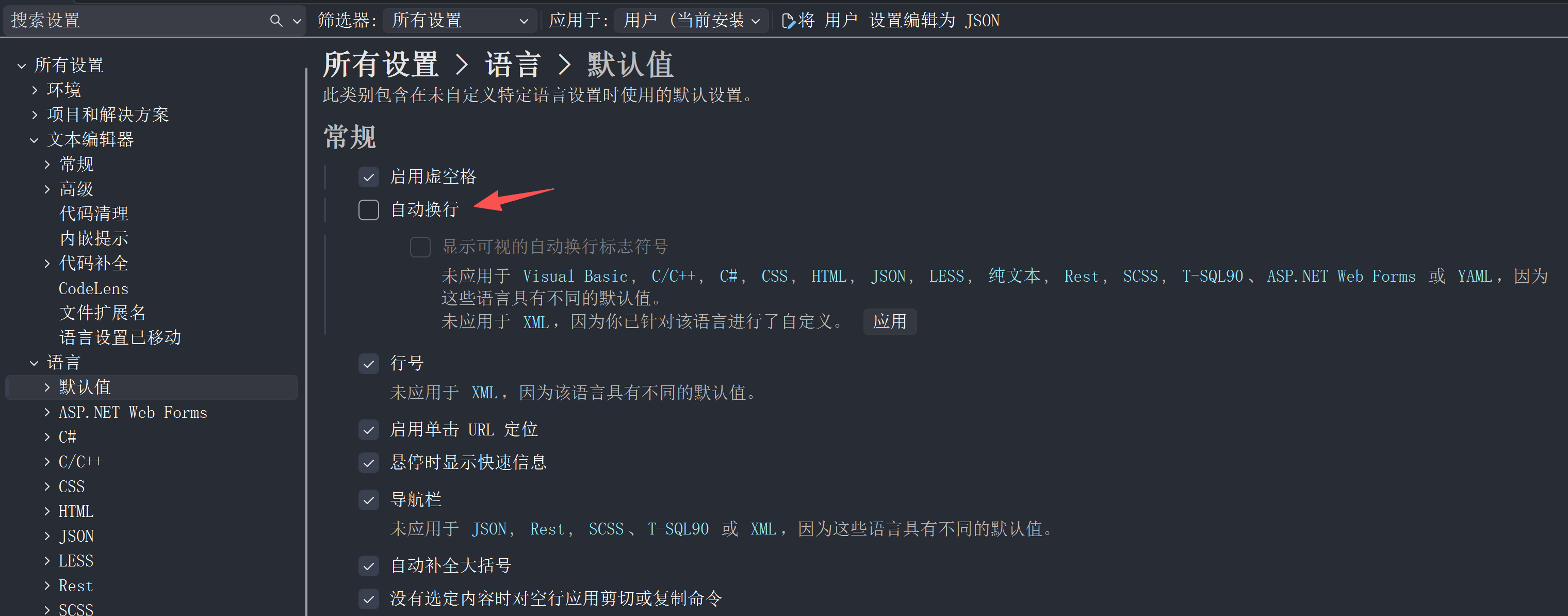 编辑器设置¶ 1 隐藏不必要代码提示¶ 浏览此宏周围的操作可能失败,考虑将其添加到提示文件中 Options > Text Editor > C/C++ > View and switch “Macros in Skipped Browsking Regions” to “None”. 选项>文本编辑器>C/C++>查看并将“跳过浏览区域中的宏”切换为“无”。 2 关闭自动换行¶ 3 关闭 CodeLens¶ 这玩意会嵌入一堆没用的信息在代码行中。 4 QSS关闭自动缩进¶